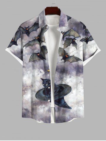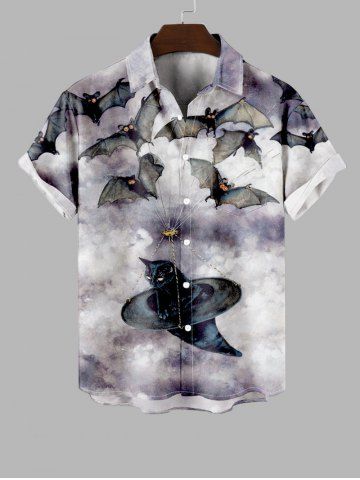 Homme> Chemise D'Halloween Chat et Chauve-souris Imprimés avec Poche de Grande Taille