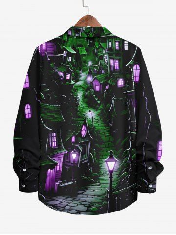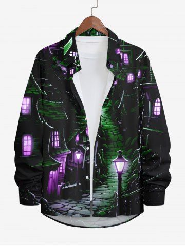 Homme> Chemise D'Halloween Château et Lanterne Imprimés Boutonnée de Grande Taille à Paillettes pour Homme