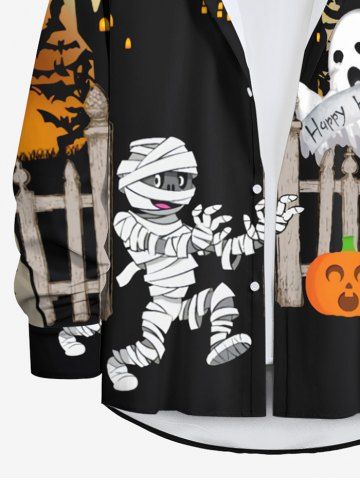 Chemise D'Halloween Citrouille Fantôme et Chauve-souris Imprimés de Grande Taille avec Boutons à Manches Longues - Multi-a - Xl