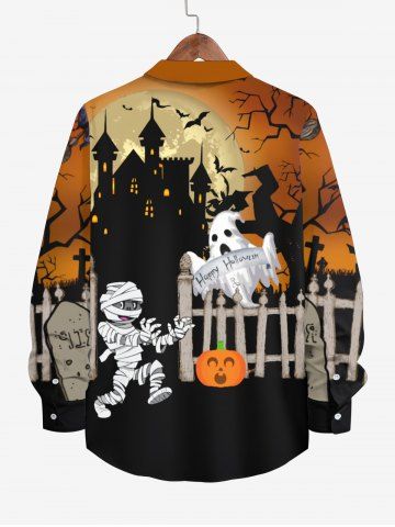 Homme> Chemise D'Halloween Citrouille Fantôme et Chauve-souris Imprimés de Grande Taille avec Boutons à Manches Longues