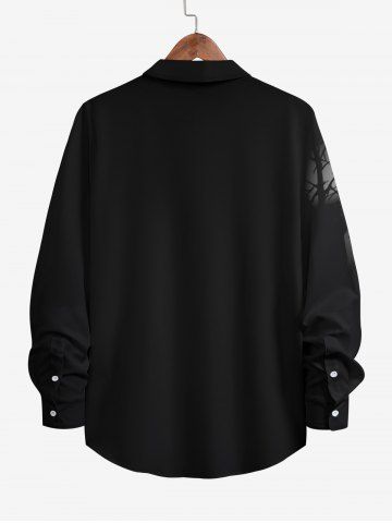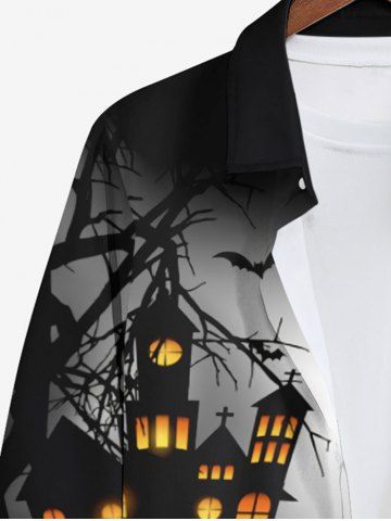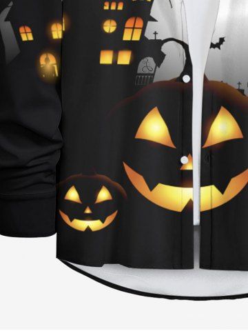 Chemise D'Halloween Citrouille Lune et Château Imprimés avec Poche de Grande Taille à Manches Longues - Noir - Noir