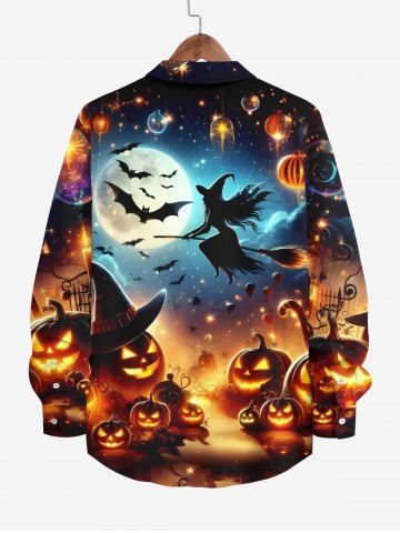Chemise D'Halloween Citrouille Lune et Chauve-souris Imprimés avec Boutons de Grande Taille à Manches Longues - Multi-a - 4xl