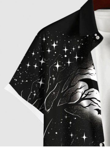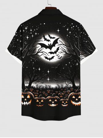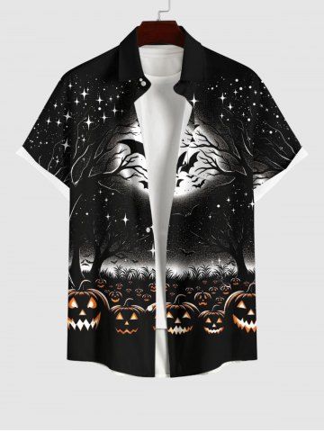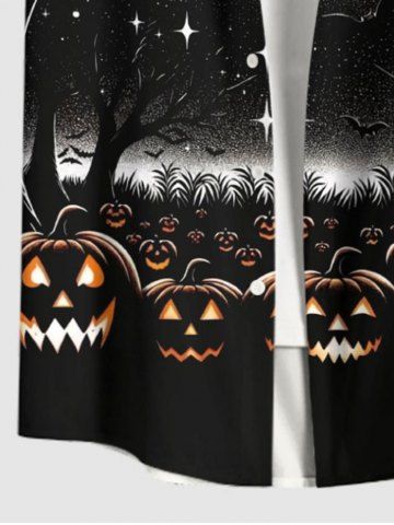 Chemise D'Halloween Citrouille Lune Etoile et Chauve-souris Imprimés Grande Taille avec Poche - Noir - Noir