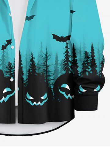 Homme> Chemise D'Halloween en Blocs de Couleurs Citrouille Arbre et Chauve-souris Imprimés Grande Taille à Manches Longues