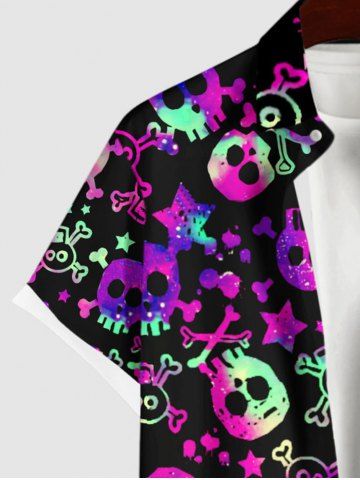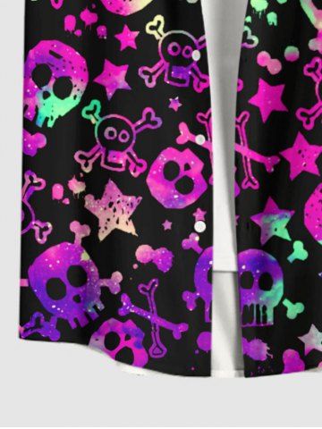 Chemise D'Halloween Etoile Crâne Colorée Imprimés avec Poche de Grande Taille avec Boutons - Noir - Noir