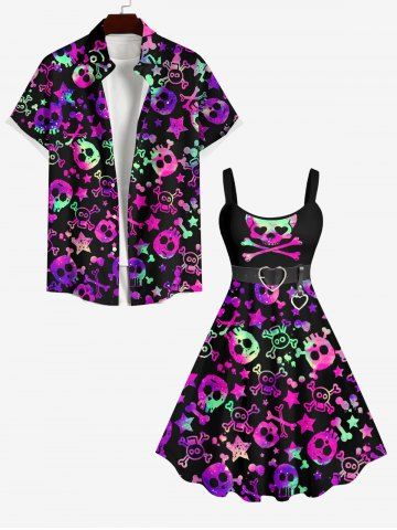 Homme> Chemise D'Halloween Etoile Crâne Colorée Imprimés avec Poche de Grande Taille avec Boutons