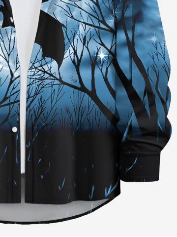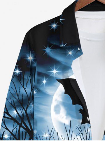Homme> Chemise D'Halloween Etoile Lune Arbre et Chauve-souris Imprimés avec Poche de Grande Taille à Manches Longues