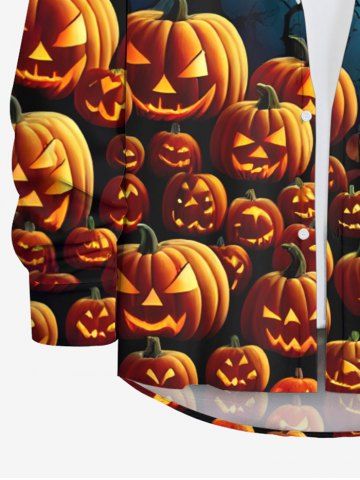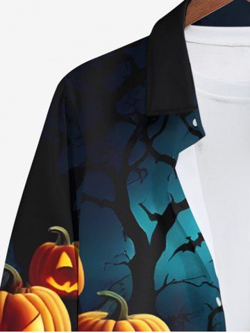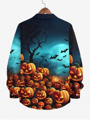 Chemise D'Halloween Lune Lanterne de Citrouille et Arbre Imprimées Boutonnée de Grande Taille pour Homme - Multi-a - 5xl