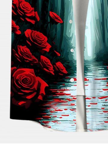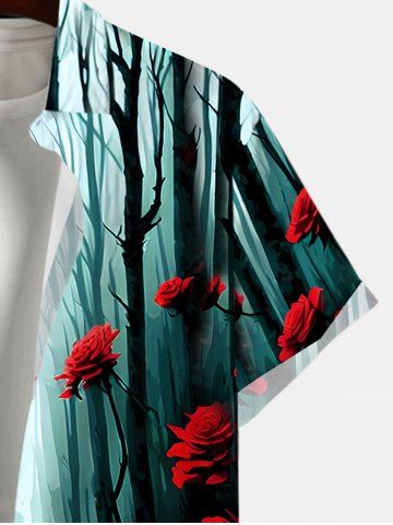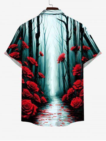 Homme> Chemise D'Halloween Rose Arbre Ombrée et Forêt Imprimés Boutonnée de Grande Taille avec Poche