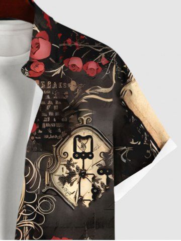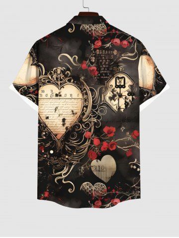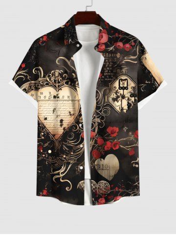 Chemise D'Halloween Rose Cœur et Lettre Imprimés de Grande Taille avec Poche Boutonnée pour Homme - Noir - Noir