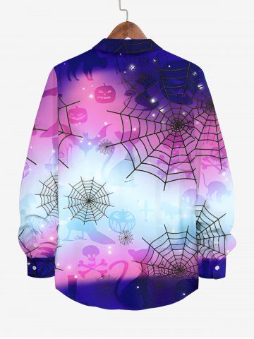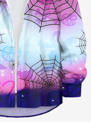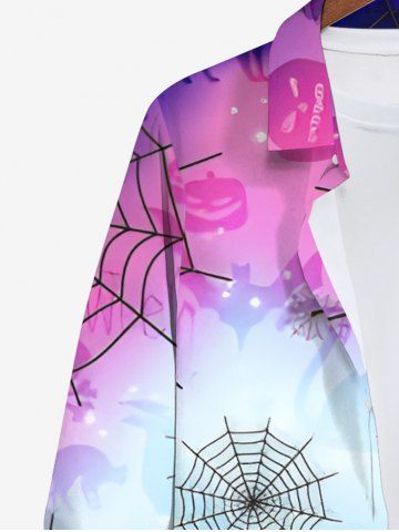 Chemise D'Halloween Toile D'Araignée Citrouille et Chauve-souris Imprimés en Blocs de Couleurs de Grande Taille avec Boutons - Multi-a - 2xl