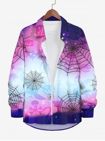 Chemise D'Halloween Toile D'Araignée Citrouille et Chauve-souris Imprimés en Blocs de Couleurs de Grande Taille avec Boutons - Multi-a - 3xl