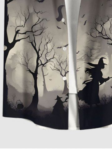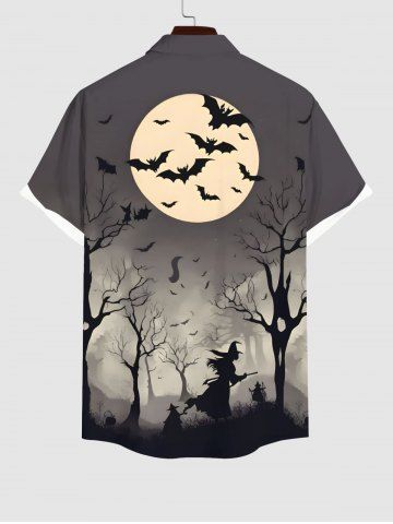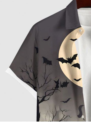 Chemise grande taille à boutons et poches pour homme, motif chauve-souris, lune, arbre, wazird, Halloween - Gris - Gris