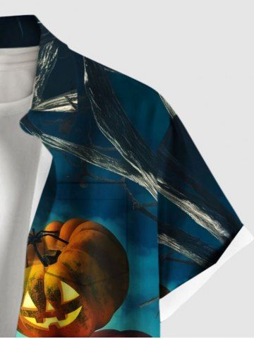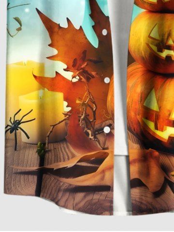Chemise grande taille à boutons et poches pour homme, motif citrouille, araignée, feuille d'érable, lune et étoiles - Multi-a - Xl