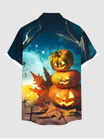 Homme> Chemise grande taille à boutons et poches pour homme, motif citrouille, araignée, feuille d'érable, lune et étoiles