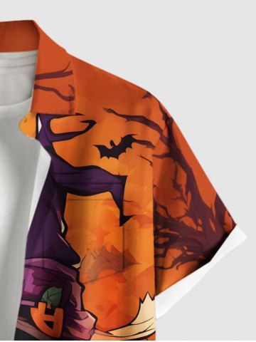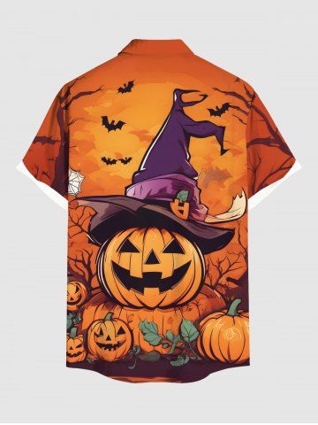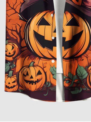 Homme> Chemise grande taille à boutons et poches pour homme, motif citrouille, chauve-souris, toile d'araignée, Halloween