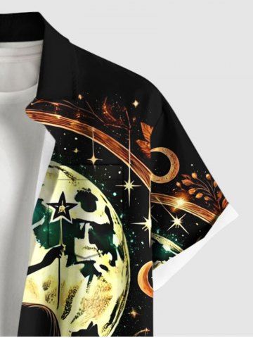 Chemise grande taille à boutons et poches pour homme, motif citrouille d'Halloween, chat, sorcière, feuille d'érable, lune - Noir - Noir