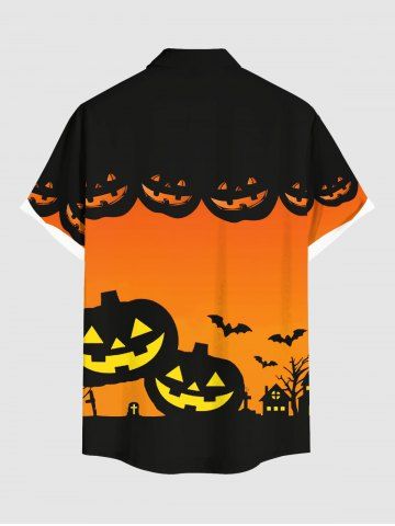 Chemise grande taille à boutons et poches pour homme, motif citrouille d'Halloween, chauve-souris, croix, colorblock - Orange - Orange