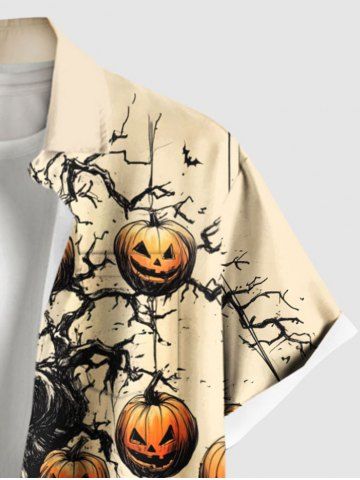 Chemise grande taille à boutons et poches pour homme, motif citrouille d'Halloween, chauve-souris - Abricot - Abricot