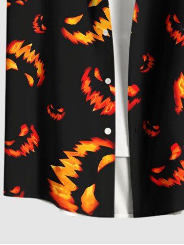 Homme> Chemise grande taille à boutons et poches pour homme, motif citrouille et lanterne d'Halloween