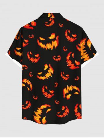 Chemise grande taille à boutons et poches pour homme, motif citrouille et lanterne d'Halloween - Noir - Noir