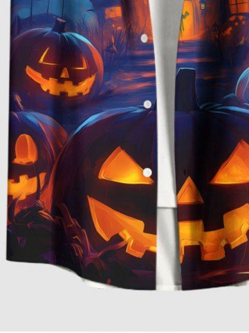 Homme> Chemise grande taille à boutons et poches pour homme, motif citrouille, lanterne, chauve-souris, lune, château, Halloween