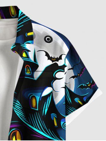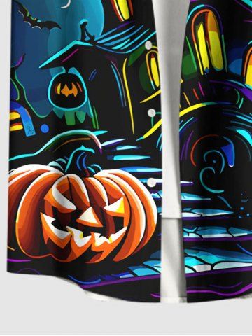 Homme> Chemise grande taille à boutons et poches pour homme, motif citrouille, lune, chauve-souris, château, Halloween