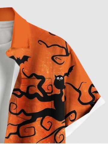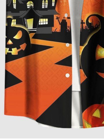 Homme> Chemise grande taille à boutons et poches pour homme, motif citrouille, lune, chauve-souris, hibou, motif CrossTree