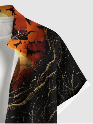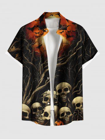 Homme> Chemise grande taille à boutons et poches pour homme, motif crânes, citrouille, chauve-souris, lune et arbre, imprimé Halloween