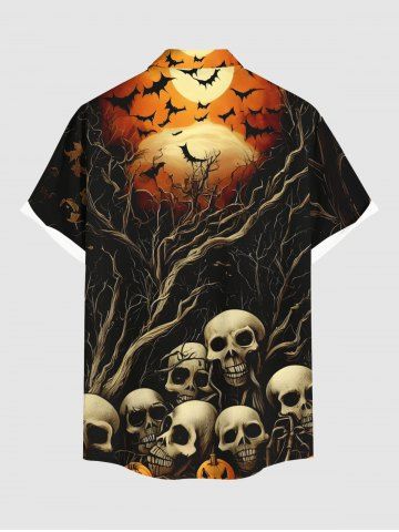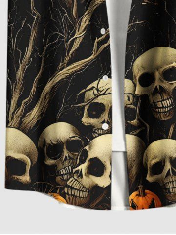 Chemise grande taille à boutons et poches pour homme, motif crânes, citrouille, chauve-souris, lune et arbre, imprimé Halloween - Noir - Noir