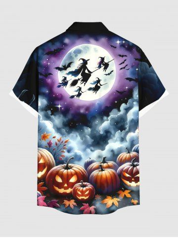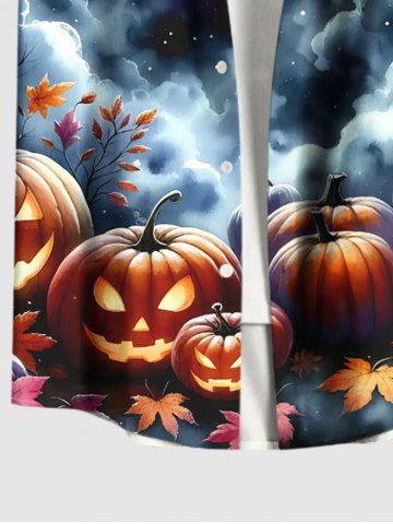 Homme> Chemise grande taille à boutons et poches pour homme, motif Halloween, lune, citrouille, feuille d'érable, chauve-souris, nuage