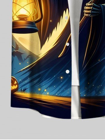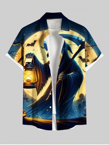 Homme> Chemise grande taille à boutons et poches pour homme, motif Halloween, lune, fantôme, chauve-souris
