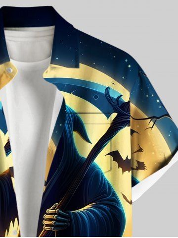 Chemise grande taille à boutons et poches pour homme, motif Halloween, lune, fantôme, chauve-souris - Noir - Noir