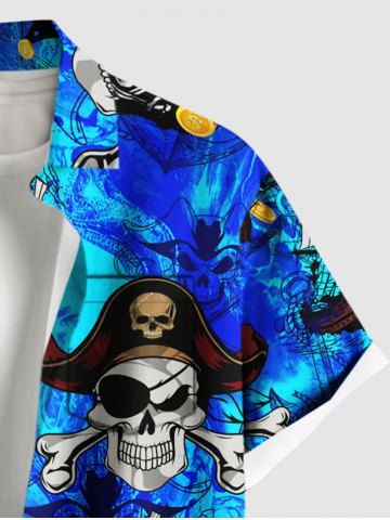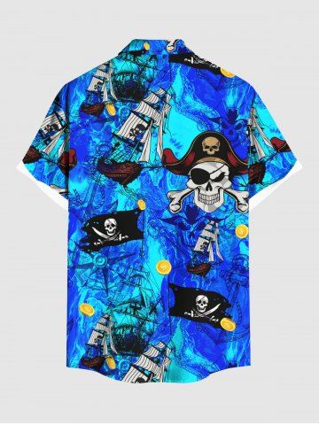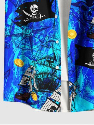 Chemise grande taille à boutons et poches pour homme, motif tête de mort, bateau pirate, gouvernail, croisière, Halloween - Bleu Ciel - Bleu Ciel