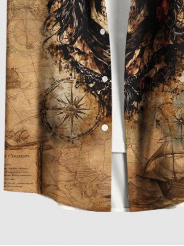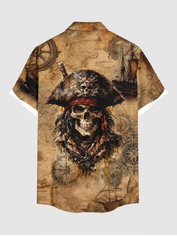 Chemise grande taille à boutons et poches pour homme, motif tête de mort, bateau pirate, imprimé gouvernail - Brun - Brun