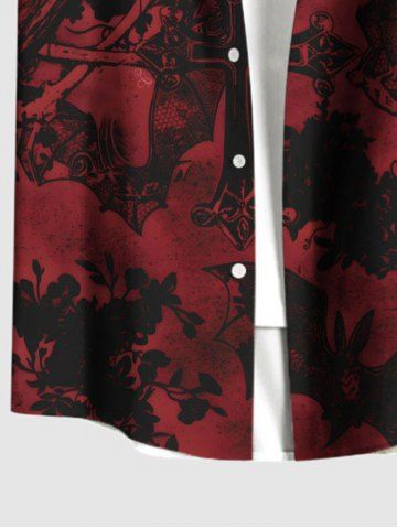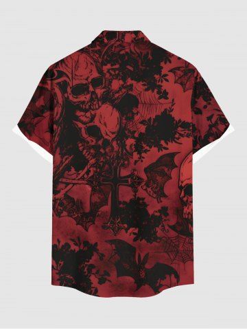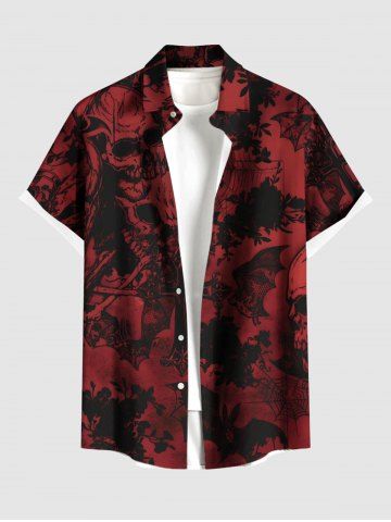 Chemise grande taille à boutons et poches pour homme, motif tête de mort, croix, toile d'araignée, chauve-souris, Halloween - Rouge Vineux - M