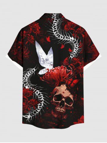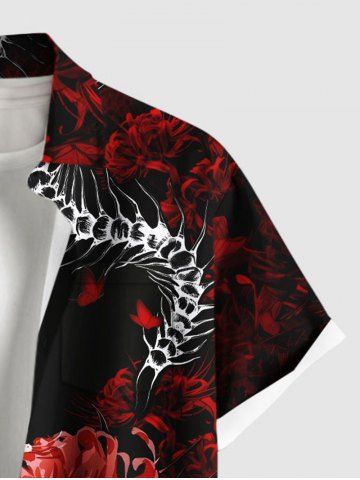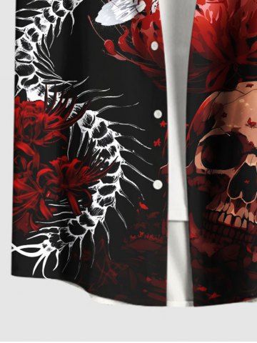 Homme> Chemise grande taille à boutons et poches pour homme, motif tête de mort, fleurs, papillons et mille-pattes