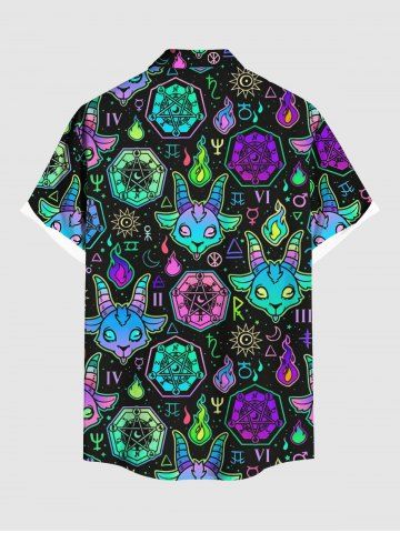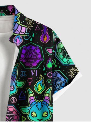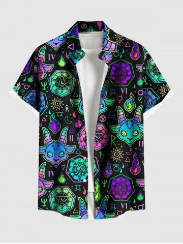 Homme> Chemise grande taille à boutons et poches pour homme, motif tête de mouton, galaxie, flammes, soleil et lune, imprimé Halloween