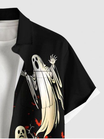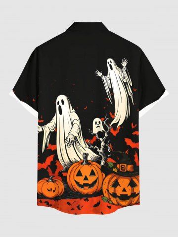 Chemise grande taille à imprimé citrouille, fantôme, chauve-souris, arbre, boutonnée, pour homme, Halloween - Noir - Noir