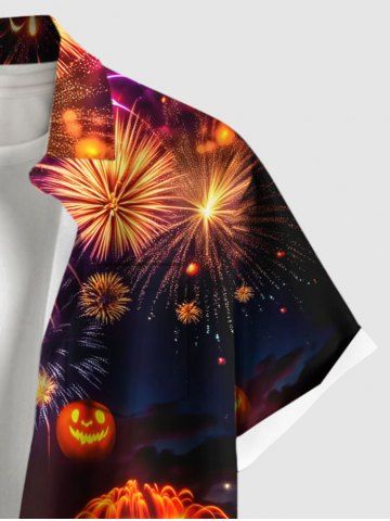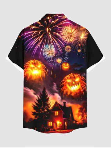 Homme> Chemise grande taille à imprimé citrouille, feux d'artifice, galaxie, arbre, château, Halloween, boutonnée, poche, pour homme