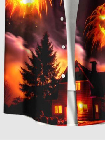 Chemise grande taille à imprimé citrouille, feux d'artifice, galaxie, arbre, château, Halloween, boutonnée, poche, pour homme - Orange Foncé - S