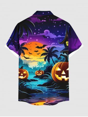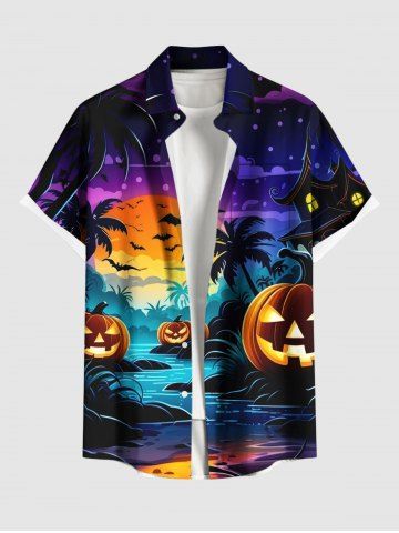 Homme > Chemise grande taille à imprimé citrouille, lanterne, cocotier, rivière, chauve-souris, lune, galaxie, ombré, Halloween, bouton, poche, pour homme