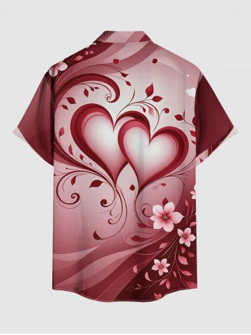 Chemise grande taille à imprimé floral et cœur, style ombré, avec poche boutonnée, pour homme - Rouge Cerise - 5xl