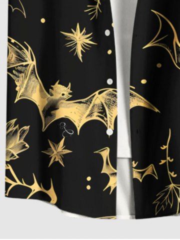 Homme> Chemise grande taille à imprimé galaxie et branches de chauve-souris pour homme, avec poches boutonnées, pour Halloween