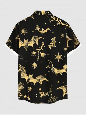 Homme> Chemise grande taille à imprimé galaxie et branches de chauve-souris pour homme, avec poches boutonnées, pour Halloween