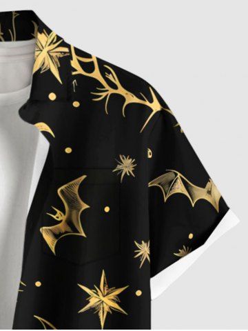 Homme> Chemise grande taille à imprimé galaxie et branches de chauve-souris pour homme, avec poches boutonnées, pour Halloween