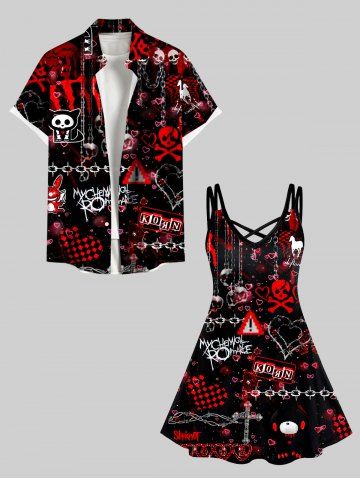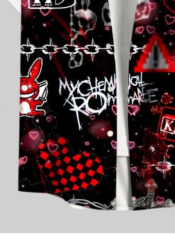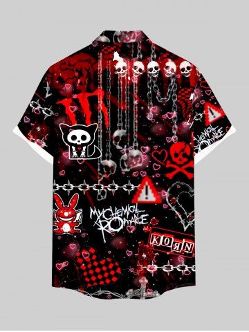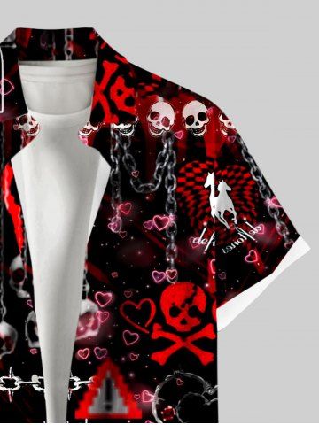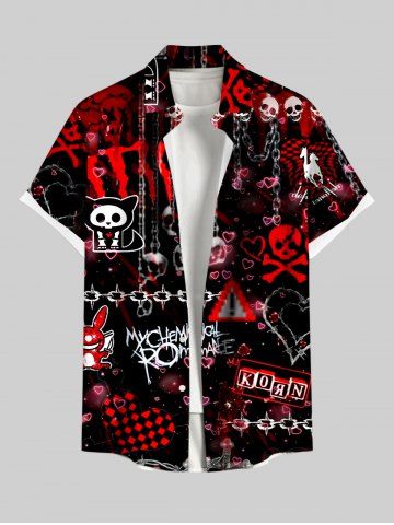 Chemise grande taille à imprimé tête de mort, chaîne, chat, cœur, Halloween, boutonnée et poche pour homme - Noir - Noir