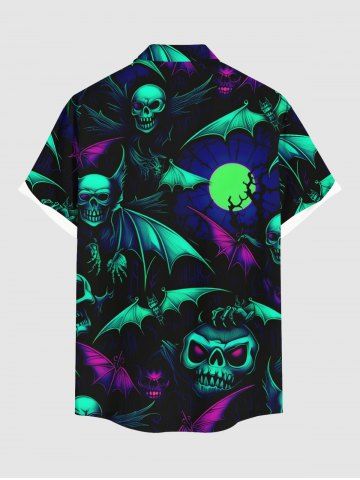Chemise grande taille à imprimé tête de mort, chauve-souris et lune pour homme, avec poches boutonnées pour Halloween - Noir - Noir