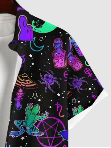 Homme> Chemise grande taille à imprimé tête de mort, chauve-souris, papillon, lune, étoile, galaxie, planète, champignon, Halloween, boutonnée, avec poche, pour homme