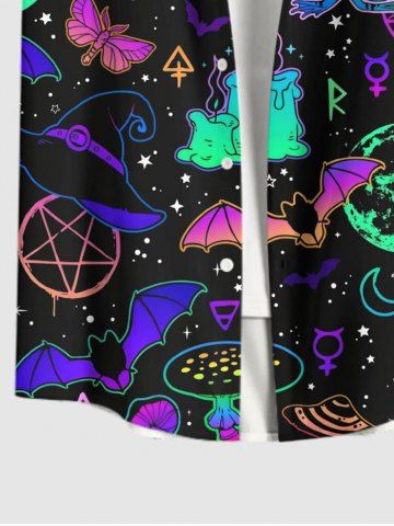 Homme> Chemise grande taille à imprimé tête de mort, chauve-souris, papillon, lune, étoile, galaxie, planète, champignon, Halloween, boutonnée, avec poche, pour homme